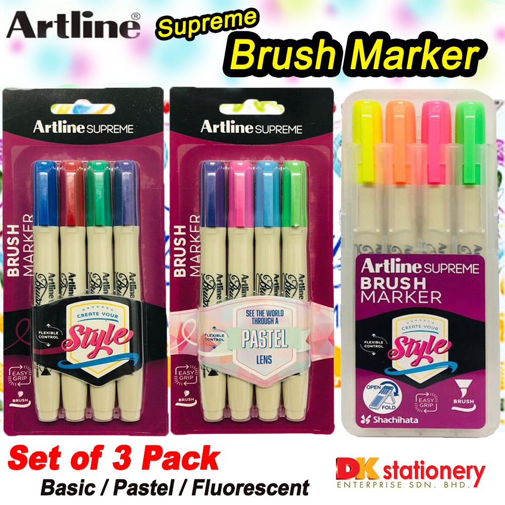 4pc Artline Supreme Brush Markers Art Crafts School Office Pen Assorted Colours Ebay