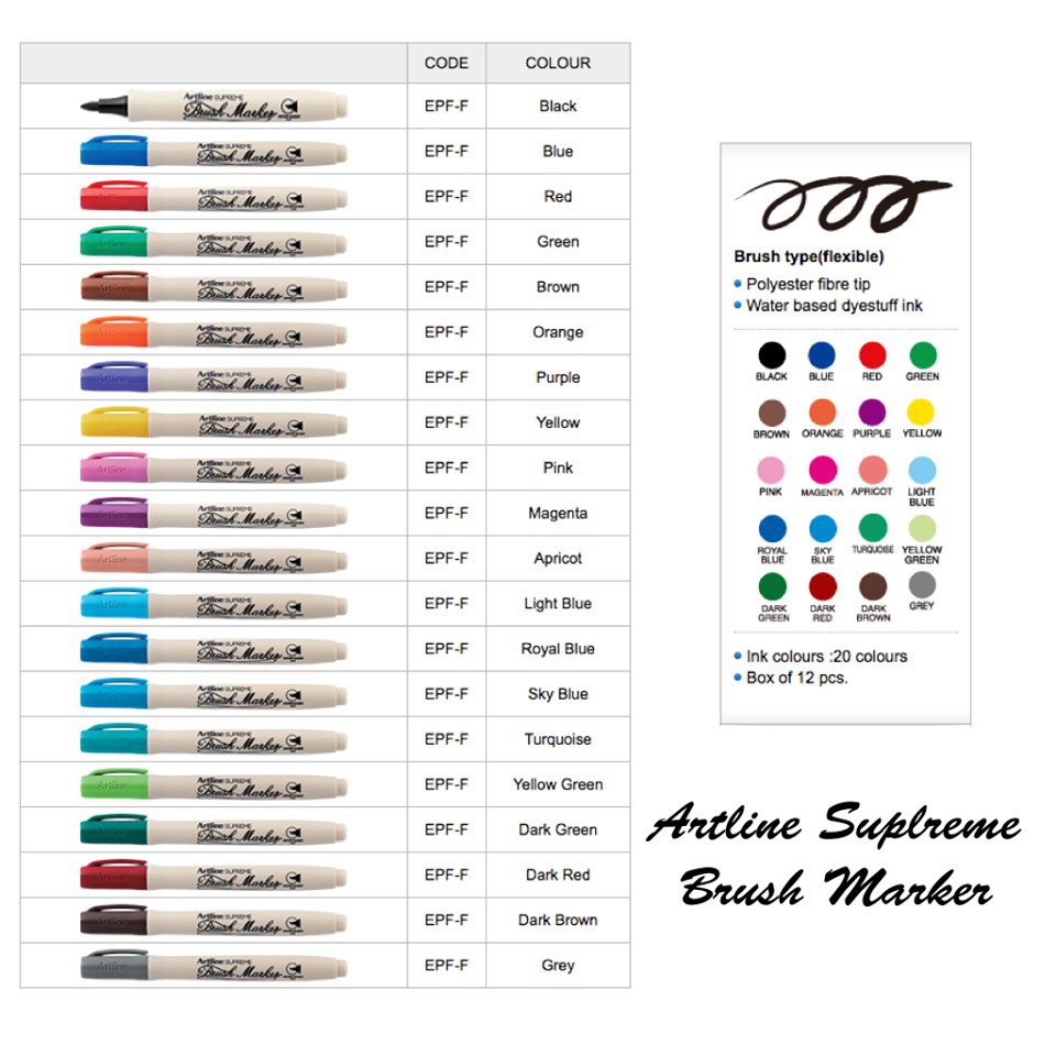 Artline Supreme Brush Marker Pens Assorted Colours Pack 20 Office Supplies Stationery Pens Writing Instruments Indianbusinesstrade Com
