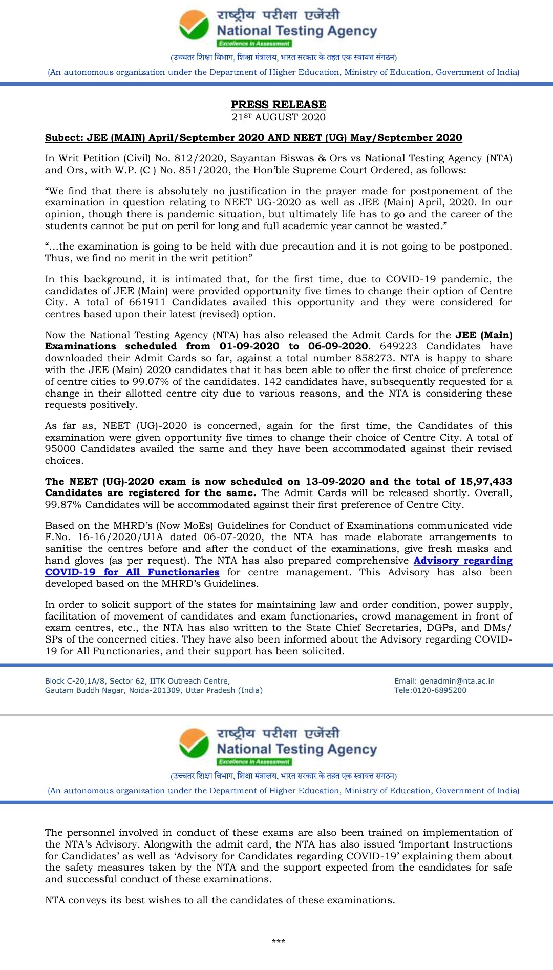 What Was The Final Verdict Given By The Supreme Court Regarding The September Jee Neet Issue Quora