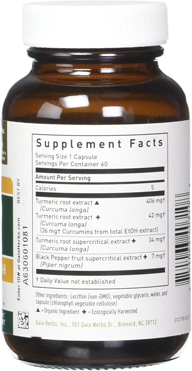 Amazon Com Gaia Herbs Turmeric Supreme Extra Strength Turmeric Curcumin Supplement With Black Pepper Daily Joint Support Healthy Inflammatory Response Vegan Liquid Capsules 60 Count Health Personal Care