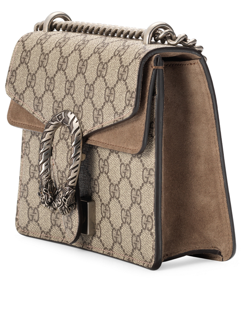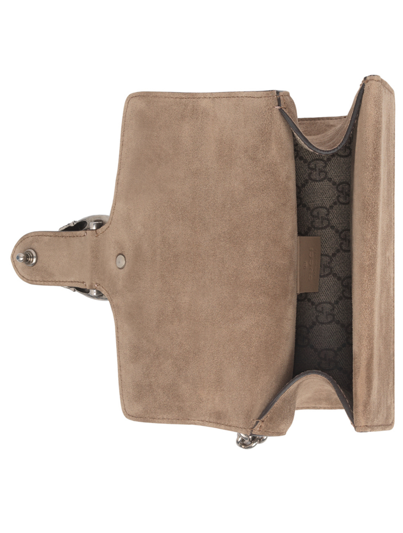 Gucci Dionysus Shoulder Bag Gg Supreme Monogram Horseshoe Tiger Spur Mini Taupe