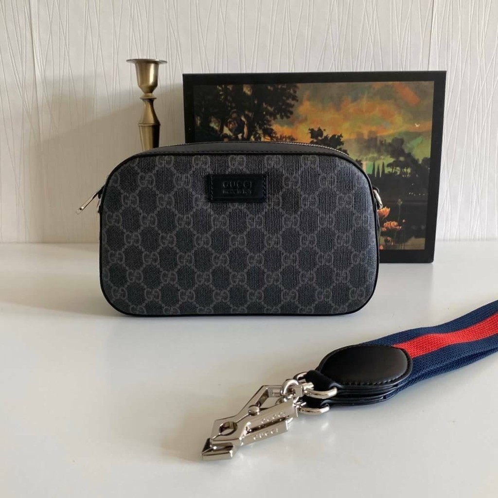 Gucci Gg Supreme Neo Vintage Camera Bag Taupe Red Modesens Sacs Gucci Sacs A Main Gucci Sac A Main Louis Vuitton