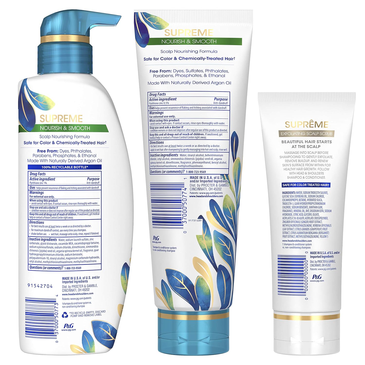 Amazon Com Head And Shoulders Supreme Scalp Care And Dandruff Treatment Shampoo Conditioner And Exfoliating Scrub Bundle Argan Oil Safe For Color Treated Hair Beauty