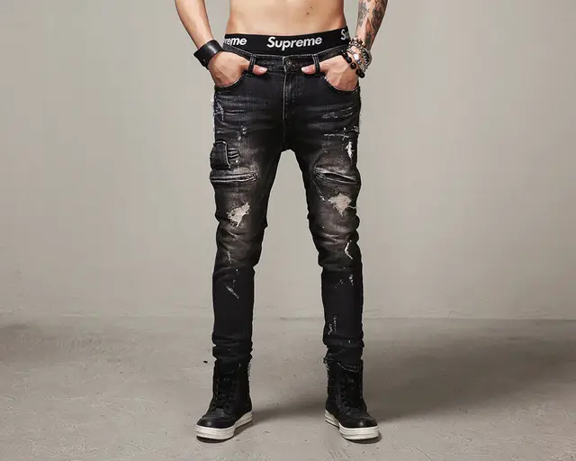 New Mens Classic Straight Slim Fit Jeans Distressed Ripped Pants Denim Trousers Tide Hole Beggars Jeans Motorcycle Jeans Mens Beggar Jeans Slim Fit Jeansmotorcycle Jeans Men Aliexpress