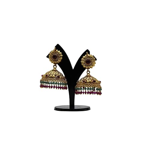 Kollam Supreme Premium Fashion Jewellery Buy Antique Gold Plated Kemp Jimikki Jhumkas Online Kollam Supreme