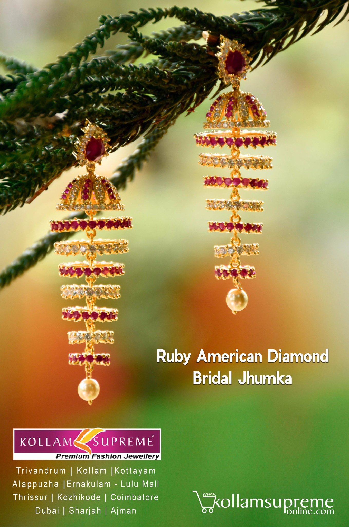 One Gram Gold Bridal Jhumkas And Earrings Buy Online Kollam Supreme Kollam Supreme Premium Fashion Jewellery