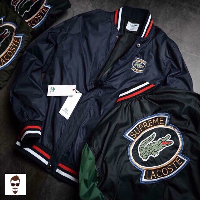 Supreme Supreme Lacoste Varsity Bomber Jacket In Navy And Green Grailed