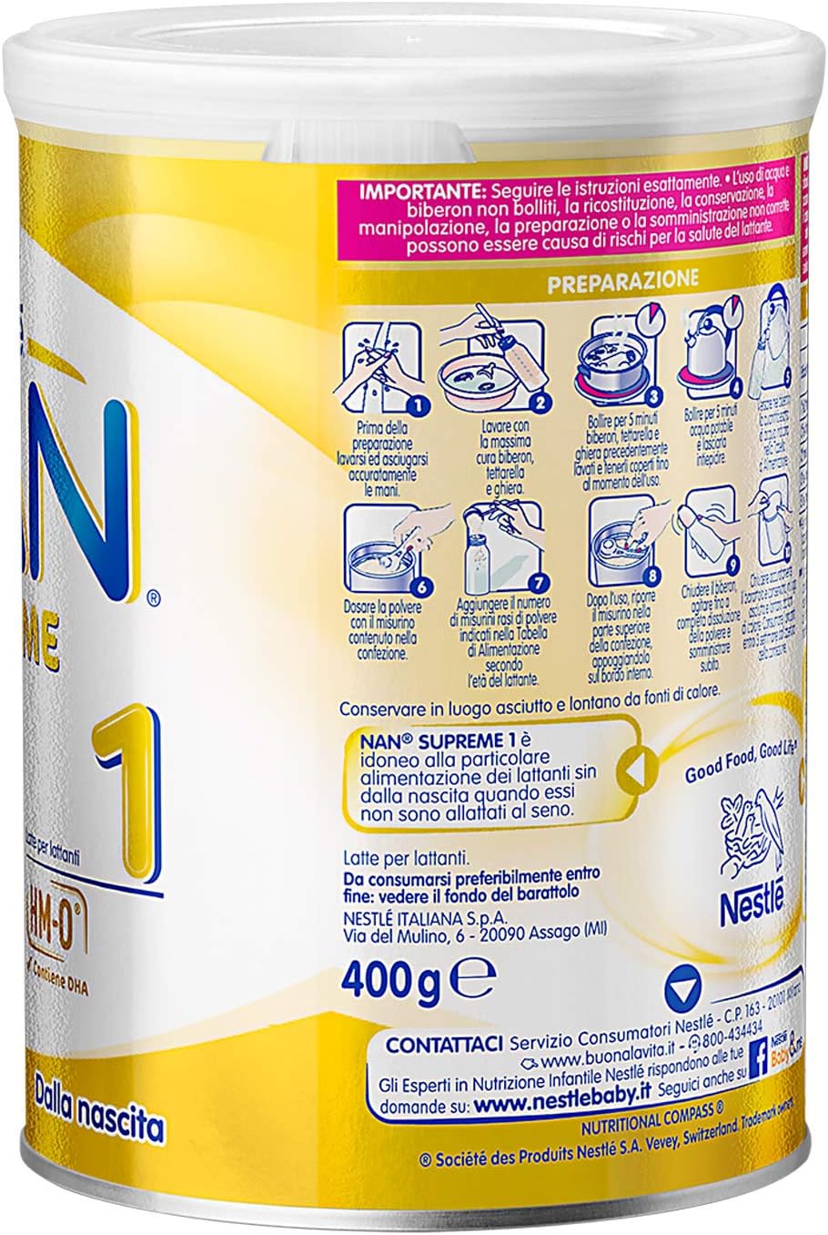 San pham dinh duong cong thuc nan supreme 1 400g voi bo doi 2 fl hm o va bifidus bl giup tang cuong suc de khang cho tre. Lactose dam chat luong optipro thuy phan mot phan dam whey whey protein dau huong duong co ham luong oleic cao dau dua dau hat cai co ham luong erucic acid thap dau huong duong canxi phot phat magie clorid kali clorid l arginine dau ca giau dha fish oil high dha 2. The nan supreme range will soon come in new straight wall cans.