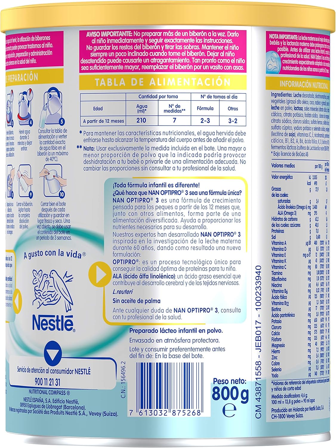 Nan Optipro 3 Preparado Lacteo Infantil Formula De Crecimiento En Polvo A Partir De Los 12 Meses 800g Amazon Es Alimentacion Y Bebidas