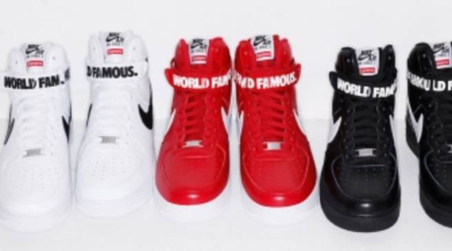 Shoes Nike Nike Shoes Nike Sneakers Supreme Red White Black Dope Dope Wishlist Nike X Supreme Nike Air Force 1 High Top Sneakers Wheretoget