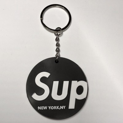 Supreme Black Sup Logo Round Shape Rubber Keychain Keyring New Ebay