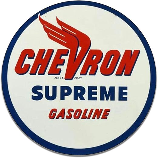 Amazon Com Brotherhood Chevron Supreme Gasoline Motor Oil Gas Classic Emblem Seal Vintage Gas Signs Reproduction Car Company Vintage Style Signs Round Mdf Wood Pressed Sign Garage Home Decor Home Kitchen