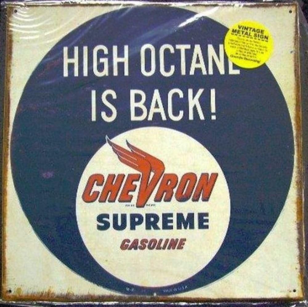 Very Old Signs About Very Rare Vintage Chevron Supreme Gasoline Gas Pump Tin Sign Vintage Tin Signs Vintage Metal Signs Old Gas Stations