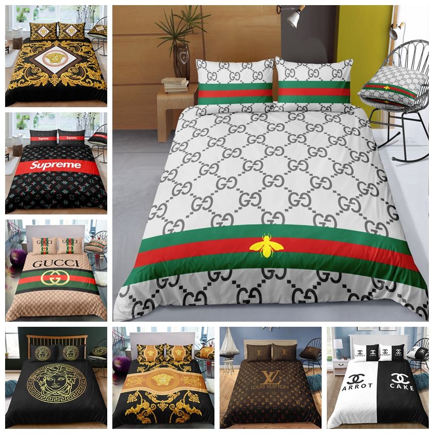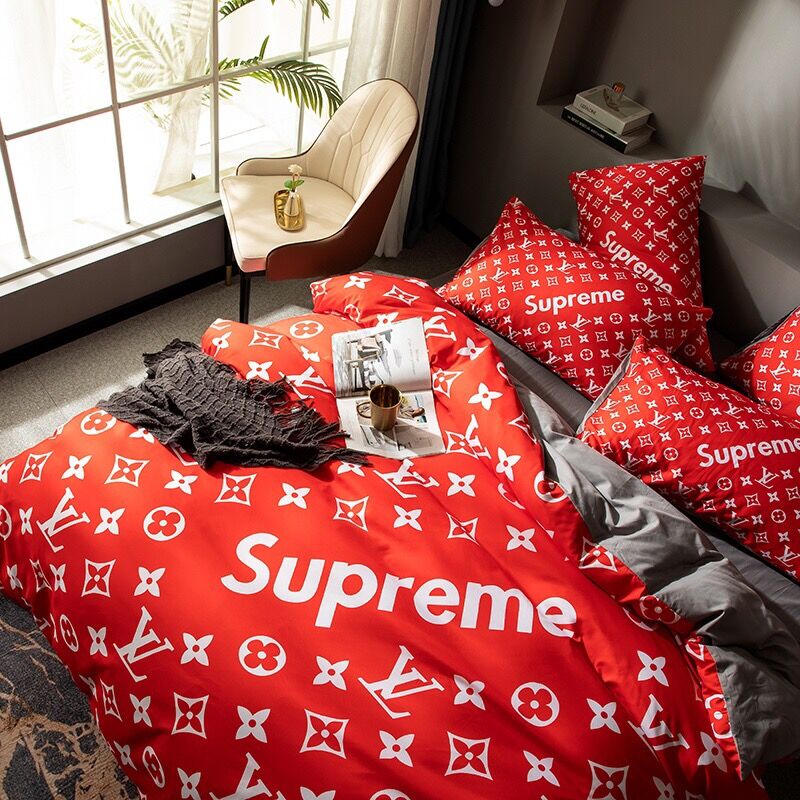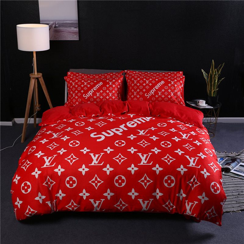 Quality Natural Silk Luxury Big Famous Brand Logo Lv X Supreme Gucci Versace Hermes Comfortable Bedding Set Quilt Cover Shopee Malaysia
