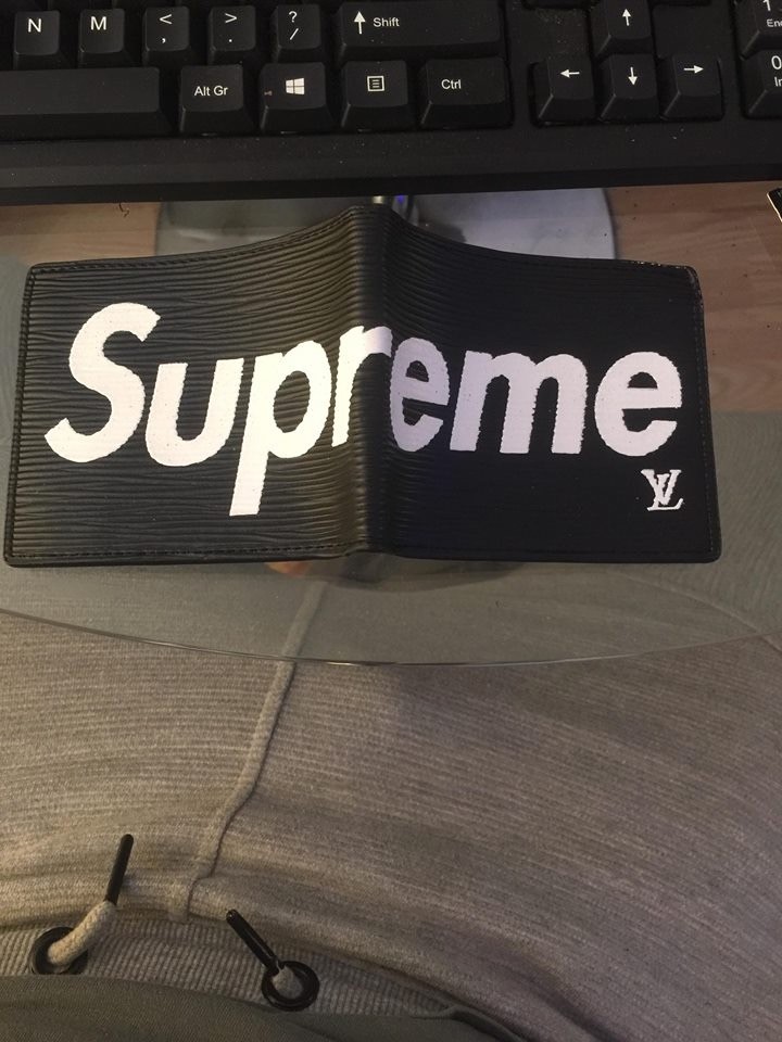 Supreme X Louis Vuitton Card Holder Black Leather Wallet Box Logo Hoodie Tee
