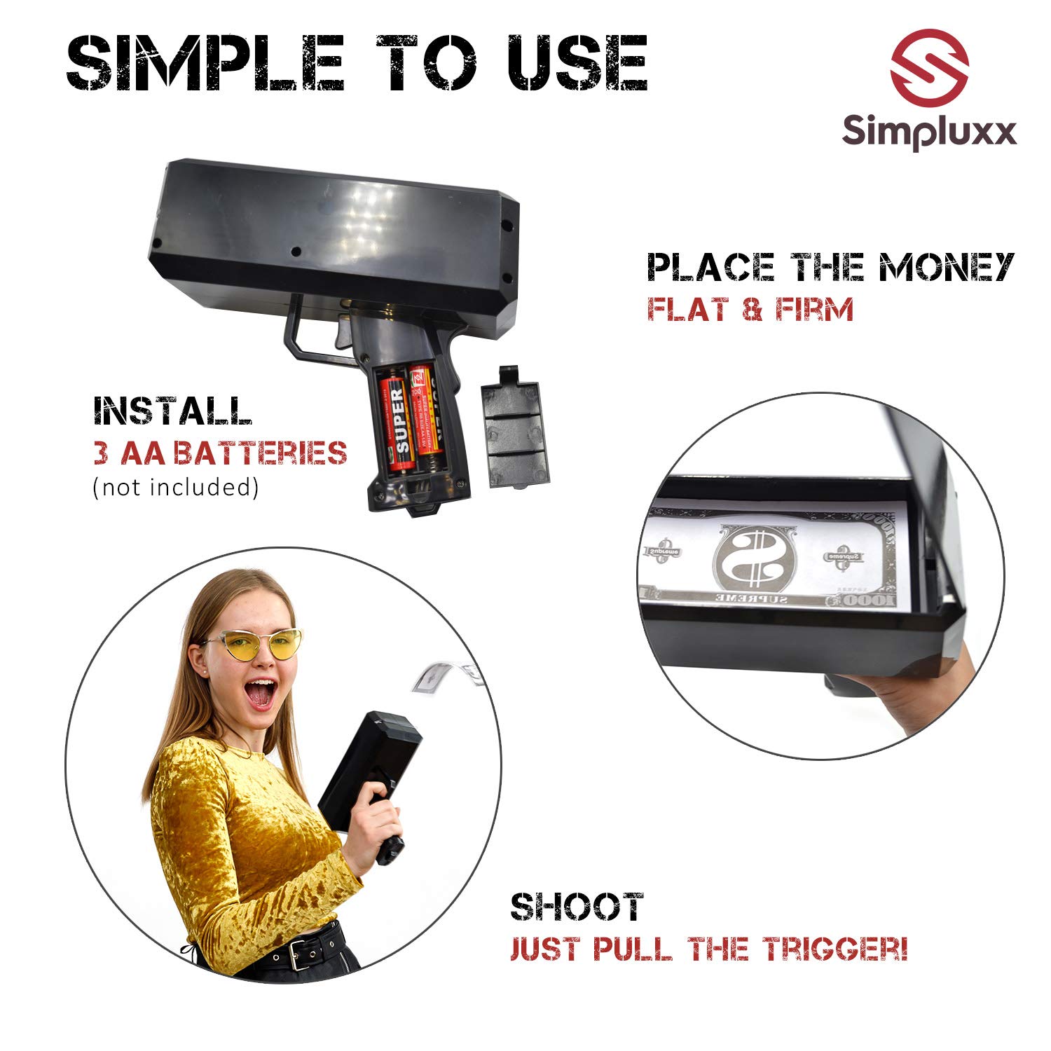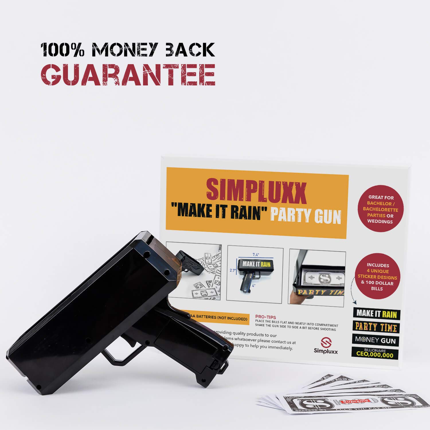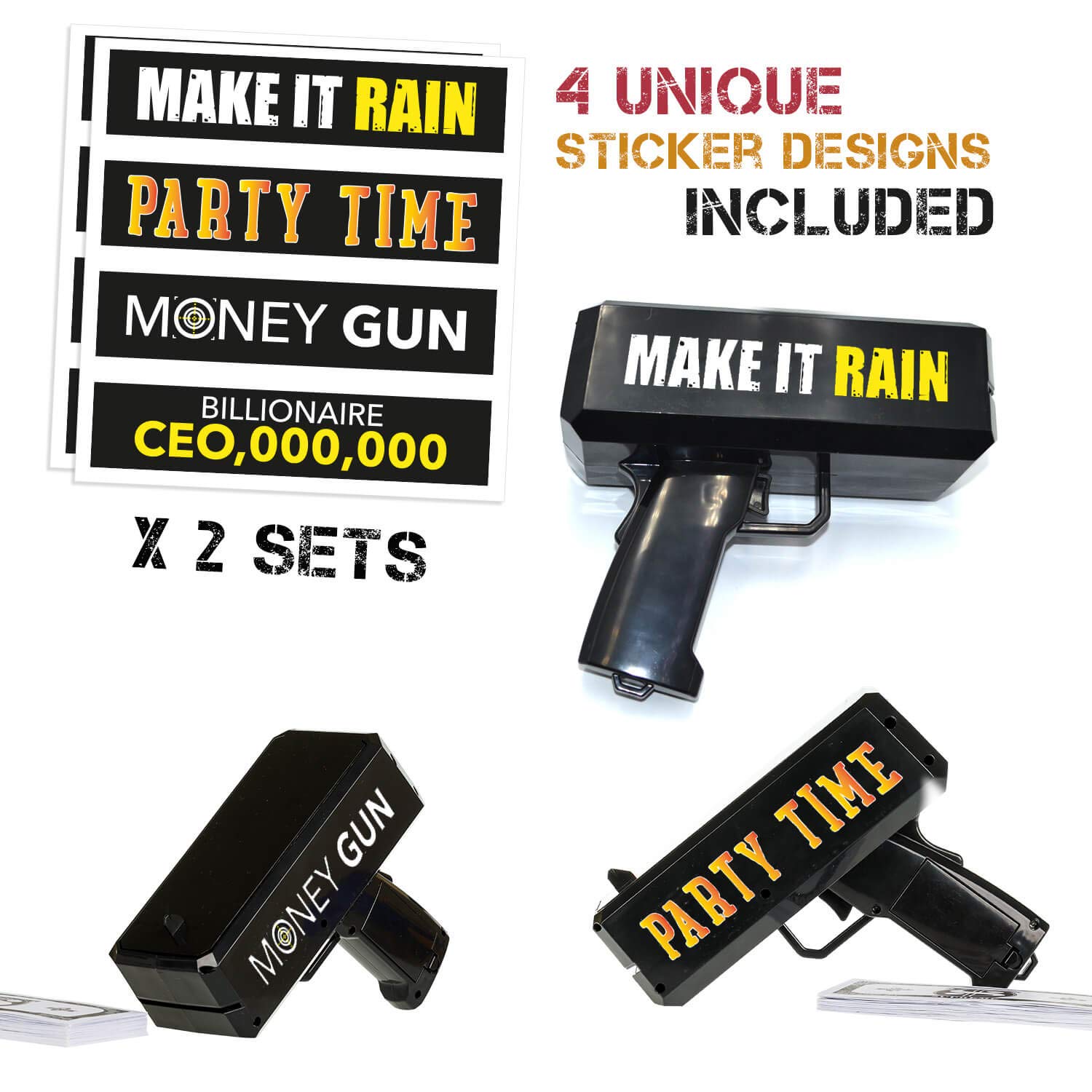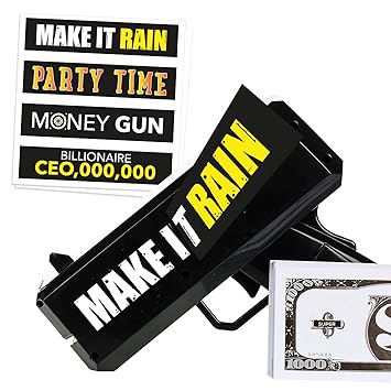 Buy Money Gun Make It Rain Fun Shooting Prop Cash Gun Shooter Includes Fake 100 Dollar Bills 4 Unique Black Stickers For All Celebrations Shoot Some Supreme Fun Into Your