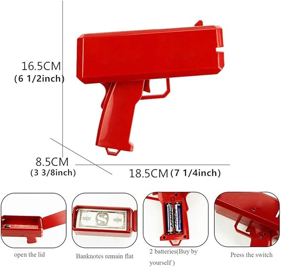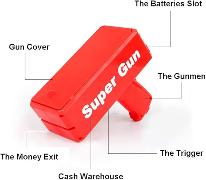 Amazon Com Suprmen Money Shooter Gun Paper Dollar Dispenser Make It Rain Cash Gun Toy Gift Funny Party Game Fake Money Red 7 4 X 6 6 X 3 1 Toys Games