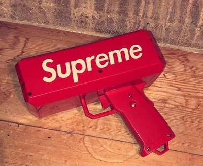 Amazon Com Super Money Spray Cash Gun Supreme Shooter Gun In Golden Impress Your Friends By Making It Rain Dollars Holds Up To 100 Pcs Of Money Bonus Supreme Stickers Toys Games