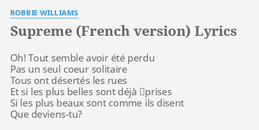 Supreme french version as written by dino fekaris frederick j. It was released as the third single from the album on 11 december 2000 by chrysalis records. Lyrics to supreme french version by robbie williams.