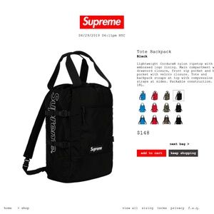 Supreme Supreme Tote Backpack Bag Ss19 Red 100 Authentic Grailed