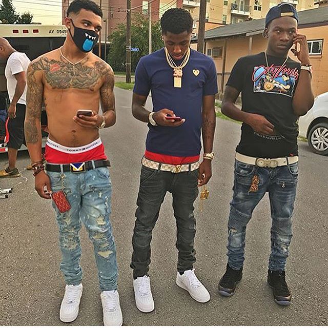 Nba Youngboy Wearing Prada Nylon Shirt Jacket In Green Supreme Catchers Chest Protector Comme Des Garcons Logo Belt Polo Ralph Lauren Classic T Shirt Polo Ralph Lauren Trainer Socks Nike Air Force 1